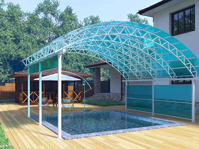 Применяется поликарбонат создания светопрозрачных конструкций, которые будут устойчивы к ветровым и весовым нагрузкам. Этот материал применяю в капитальном и частном строительстве для создания: